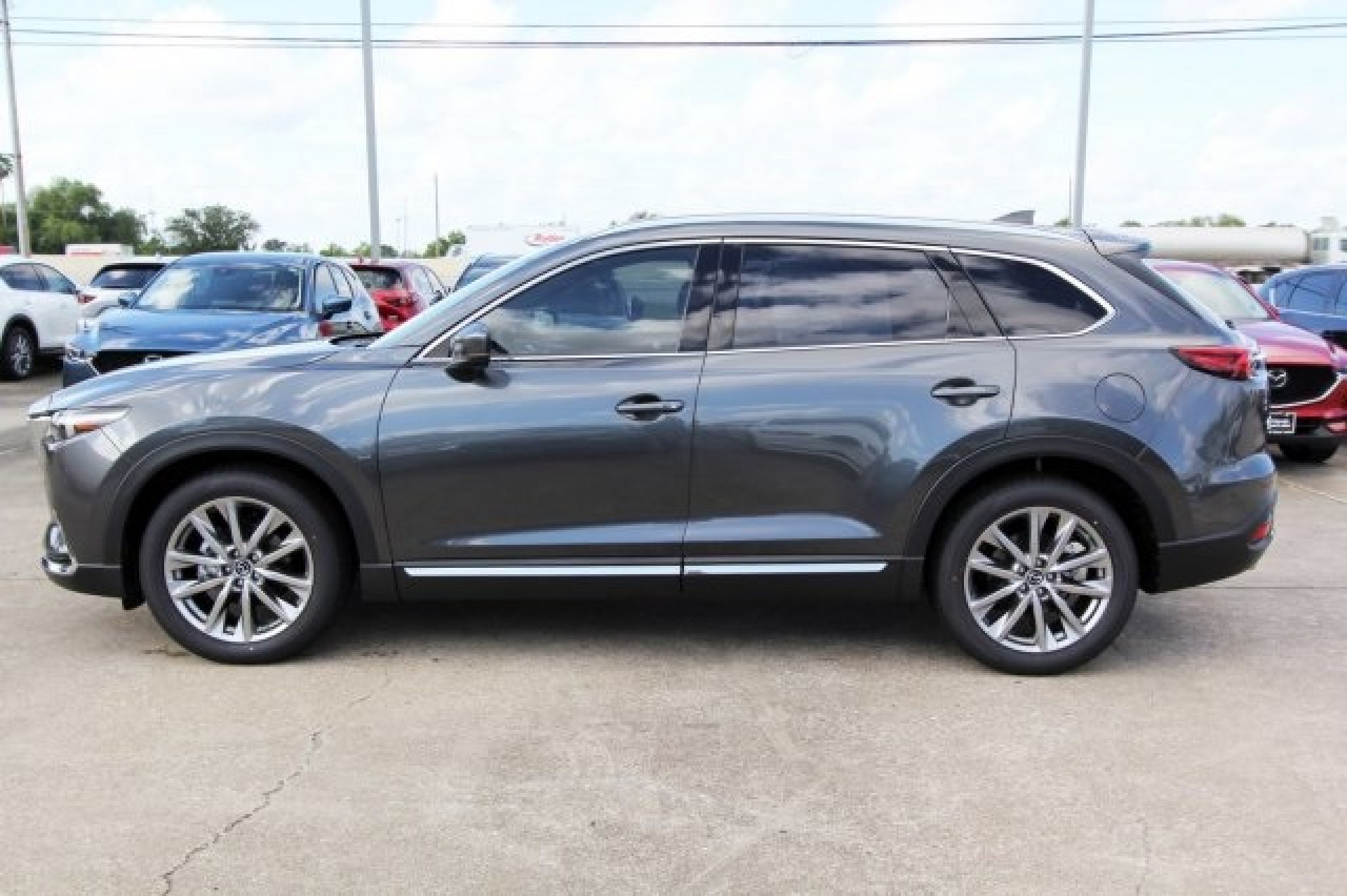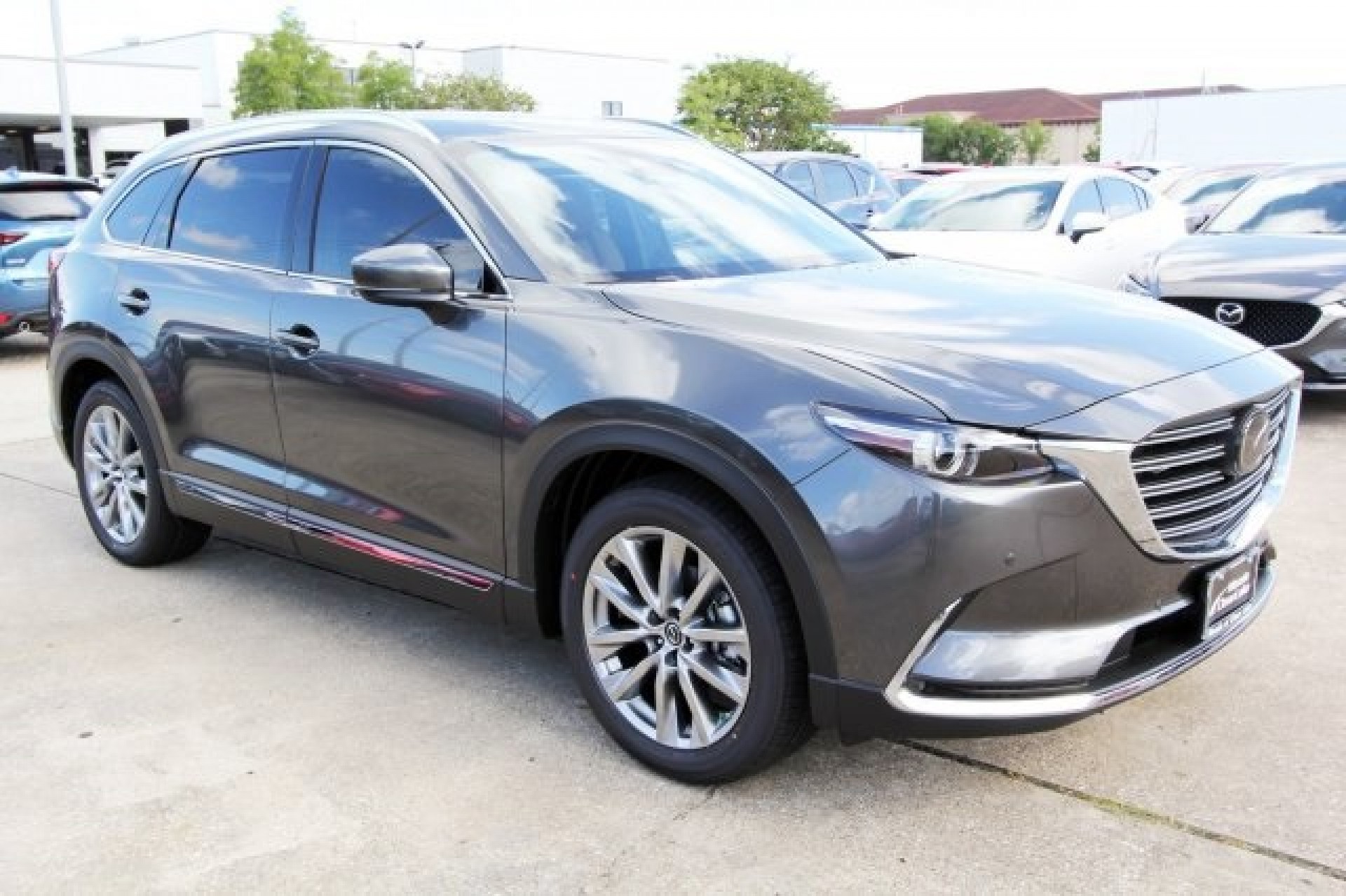 12 Speakers, 3rd row seats: split-bench, 4-Wheel Disc Brakes, ABS brakes, AM/FM radio: SiriusXM, Aha Internet Radio, Anti-whiplash front head restraints, Auto High-beam Headlights, Automatic temperature control, Axle Ratio: 4.411, Blind spot sensor: Blind Spot Monitoring warning, Bumpers: body-color, Delay-off headlights, Distance pacing cruise control: Mazda Radar Cruise Control (MRCC), Driver door bin, Dual front impact airbags, Dual front side impact airbags, E911 Automatic Emergency Notification, Electronic Stability Control, Emergency communication system: Mazda Connect, Four wheel independent suspension, Front Center Armrest, Front Fog Lights, Front anti-roll bar, Front dual zone A/C, Fully automatic headlights, Garage door transmitter: Homelink, Genuine wood door panel insert, Heated Front Seats, Heated Rear Seats, Heated door mirrors, Heated/Ventilated Front Bucket Seats, Illuminated entry, Infotainment System Voice Command, Low tire pressure warning, Mazda Navigation System, Memory seat, Nappa Leather-Trimmed Seats, Navigation System, Occupant sensing airbag, Overhead Console, Overhead airbag, Pandora Internet Radio, Panic alarm, Passenger door bin, Power Driver Seat, Power door mirrors, Radio Broadcast Data System Program Information, Radio data system, Radio: AM/FM Sound System w/Bose Audio, Rain Sensing Wipers, Rear anti-roll bar, Roof rack: rails only, SMS Text Msg Audio Delivery & Reply, Speed-sensing steering, Spoiler, Steering Wheel Mounted Audio Controls, Stitcher Internet Radio, Sun blinds, Telescoping steering wheel, Tilt Steering Wheel, Turn signal indicator mirrors, Variably intermittent wipers, Wheels: 20" x 8.5J Aluminum Alloy