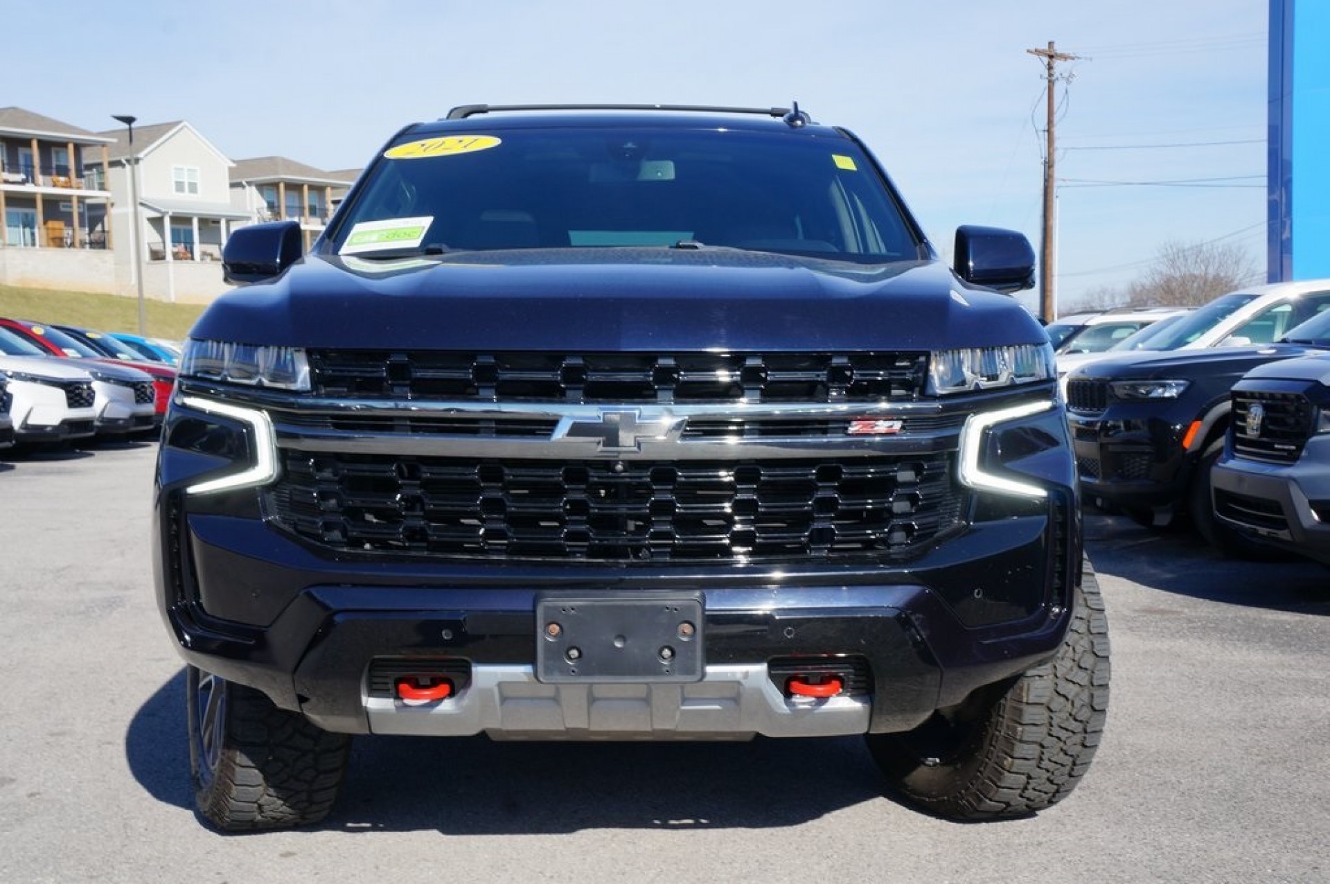 10-Way Power Driver & Passenger Seat Adjusters, 1st & 2nd Row Color-Keyed Carpeted Floor Mats, 2 USB Data Ports, 2-Speed Active Electronic AutoTrac Transfer Case, 2nd Row Pwr Release 60/40 Split-Folding Bench Seat, 3rd Row 60/40 Power-Folding Split-Bench Seat, 3rd row seats: split-bench, 4-Wheel Disc Brakes, 9 Speakers, ABS brakes, AM/FM radio: SiriusXM with 360L, Advanced Trailering Package, Advanced Trailering System, Alloy Wheels, Apple CarPlay/Android Auto, Auto High-beam Headlights, Auto-Dimming Inside Rear-View Mirror, Automatic Heated Steering Wheel, Automatic temperature control, Black Tubular Assist Steps, Bose 9-Speaker Stereo Audio System Feature, Bright Front & Rear Door Sill Plates, Bumpers: body-color, Color-Keyed Carpeting Floor Covering, Delay-off headlights, Driver & Front Outboard Passenger Airbags, Driver door bin, Dual front impact airbags, Dual front side impact airbags, Dual-Pane Power Panoramic Sunroof, Emergency communication system: OnStar and Chevrolet connected services capable, Floor Console w/Storage Area, Four wheel independent suspension, Front Center Armrest, Front High-Approach Angle Fascia, Front High-Back Reclining Bucket Seats, Front anti-roll bar, Front dual zone A/C, Fully automatic headlights, HD Radio, Hands-Free Rear Power Programmable Liftgate, Heated 2nd Row Outboard Seats, Heated Driver & Front Passenger Seats, Heated Front Seats, Heated door mirrors, Hill Descent Control, Hitch Guidance w/Hitch View, Illuminated entry, Infotainment Display, Lane Change Alert w/Side Blind Zone Alert, Luxury Package, Max Trailering Package, Memory Settings, Memory Settings for Driver, Memory seat, Occupant sensing airbag, Overhead Console, Overhead airbag, Panic alarm, Passenger door bin, Power Driver Seat, Power Tilt & Telescopic Steering Column, Power door mirrors, Preferred Equipment Group 2Z7, Premium Smooth Ride Suspension, Premium audio system: Chevrolet Infotainment 3, Radio: Chevrolet Infotainment 3 Plus System, Rain Sensing Wipers, Rear Pedestrian Alert, Rear anti-roll bar, Red Horizontal-Mounted Recovery Hooks, Roof rack: rails only, SiriusXM Radio w/360L, Speed-sensing steering, Spoiler, Steering Wheel Mounted Audio Controls, Telescoping steering wheel, This (INSERT ADJECTIVE) vehicle comes equipped with 2 keys, Tilt Steering Wheel, Universal Home Remote, Variably intermittent wipers, Voltmeter, Wheels: 20" x 9" Machined Aluminum, Z71 Signature Package (DISC)