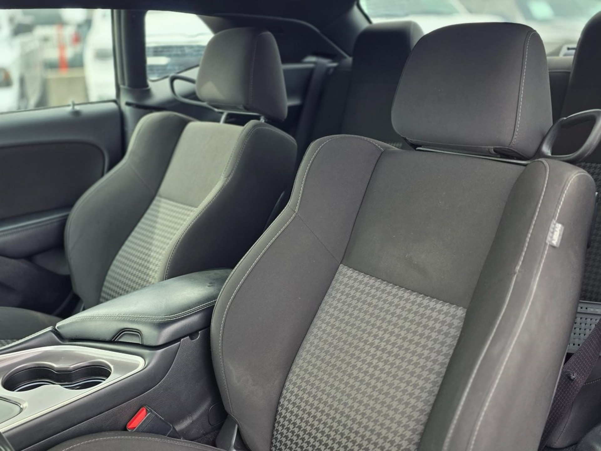 4-Wheel Disc Brakes, ABS brakes, Alloy Wheels, Anti-whiplash front head restraints, Apple CarPlay/Android Auto, Automatic temperature control, Bumpers: body-color, Compass Gauge, Delay-off headlights, Driver door bin, Dual front impact airbags, Dual front side impact airbags, Four wheel independent suspension, Front Center Armrest, Front Fog Lights, Front anti-roll bar, Front dual zone A/C, Fully automatic headlights, GPS Antenna Input, Heated door mirrors, Houndstooth Cloth Performance Seats, Illuminated entry, Overhead Console, Overhead airbag, Panic alarm, Passenger door bin, Power Driver Seat, Power door mirrors, Quick Order Package 2EL, Radio data system, Rear anti-roll bar, Speed-sensing steering, Spoiler, Steering Wheel Mounted Audio Controls, Telescoping steering wheel, Tilt Steering Wheel, Variably intermittent wipers, Wheels: 20" x 8.0" Satin Carbon Painted