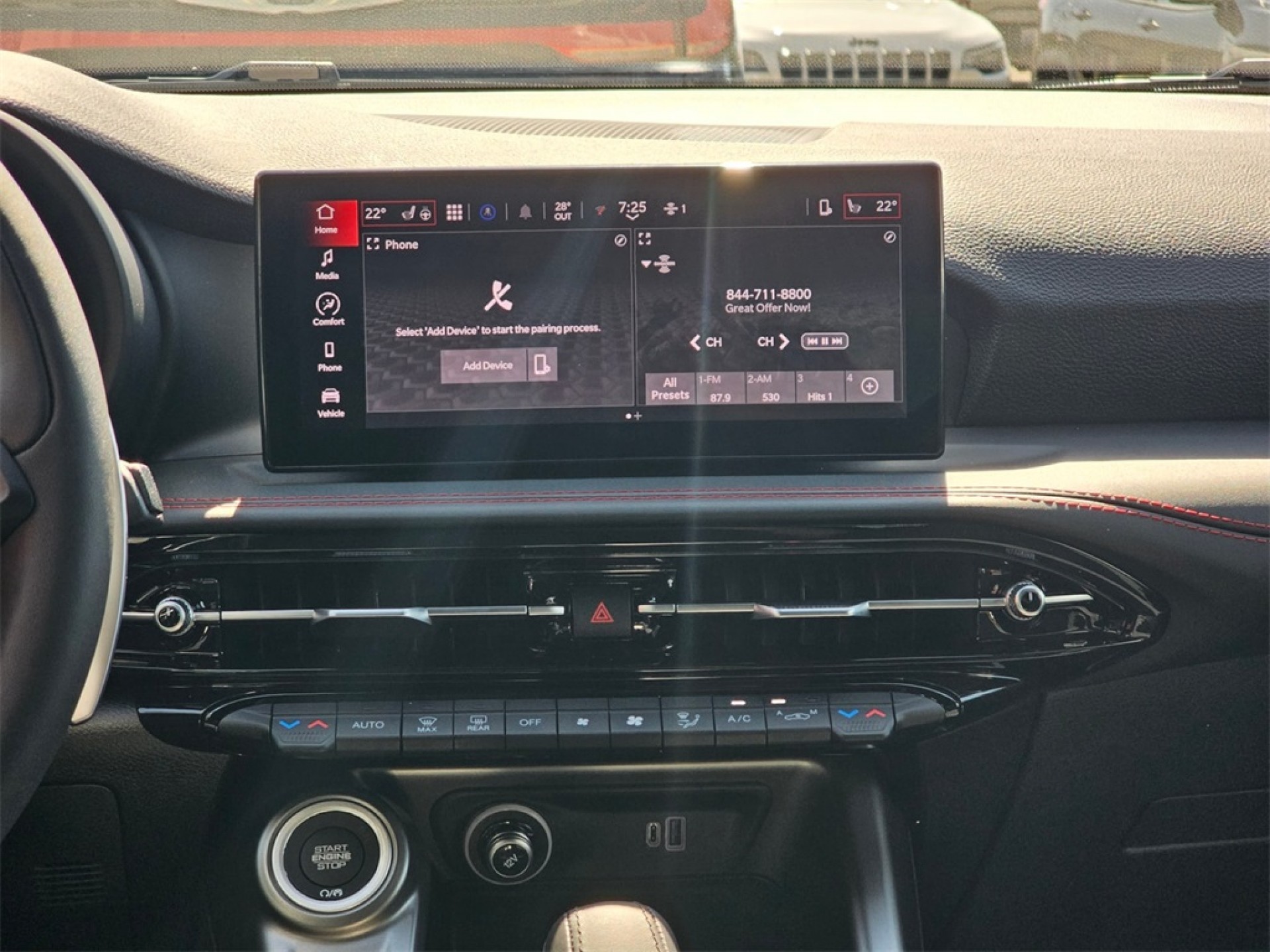 4-Wheel Disc Brakes, ABS brakes, AM/FM radio: SiriusXM, Alloy Wheels, Anti-whiplash front head restraints, Apple CarPlay/Android Auto, Auto High-beam Headlights, Bumpers: body-color, Cloth/Leatherette Seats, Dark Hornet Badge, Dark R/T Badge, Delay-off headlights, Driver door bin, Dual front impact airbags, Dual front side impact airbags, Emergency communication system: SiriusXM Guardian, Four wheel independent suspension, Front Center Armrest w/Storage, Front dual zone A/C, Fully automatic headlights, Gloss Black Painted Day Light Opening, Gloss Black Painted Mirror Caps, Heated Front Seats, Heated door mirrors, Illuminated entry, Knee airbag, Lane Departure Warning System, Memory seat, Normal Duty Suspension, Occupant sensing airbag, Overhead Console, Overhead airbag, Panic alarm, Passenger door bin, Power Driver Seat, Power door mirrors, Quick Order Package 28B, R/T Blacktop Package, Radio: Uconnect 5 w/10.25" Display, Rain Sensing Wipers, Rear anti-roll bar, Speed-sensing steering, Spoiler, TBD Axle Ratio, Telescoping steering wheel, Tilt Steering Wheel, Turn signal indicator mirrors, Variably intermittent wipers, Wheels: 18" x 7.5" Abyss Finish Aluminum, Wheels: 18" x 7.5" Graphite Aluminum